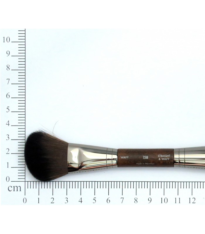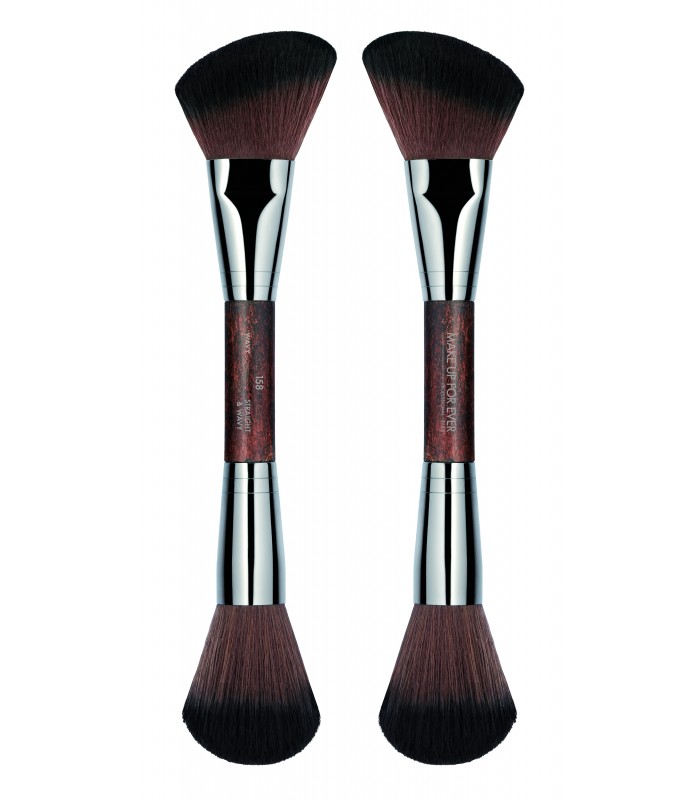Pensulă dublă de mărime medie, destinată aplicării fardurilor pudră (compacte sau pulberi). Pensula teșită este ideală pentru aplicarea controlată a fardurilor de obraz și a fardurilor de modelare cu texturi pudrate, inclusiv la aplicarea pudrelor de tip HD, respectiv pudre care conțin exclusiv sau predominant dioxid de siliciu („silica”).