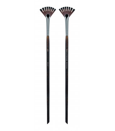 - Pensula numărul 402: Pensulă de mărime medie, în formă de evantai zimțat, ideală în machiajul artistic pentru desenarea dintr-o mișcare a unor grupuri de linii caligrafice (cu grosime variabilă) paralele. Pentru un control mai bun al pensulei, fardurile utilizate trebuie să fie cât mai lichide și nu foarte dense. Coada: lungă, conică, din lemn lăcuit mat, cu secțiune rotundă și capăt teșit pentru prelevarea igienică a produsului (dar nerecomandat pentru estompare).